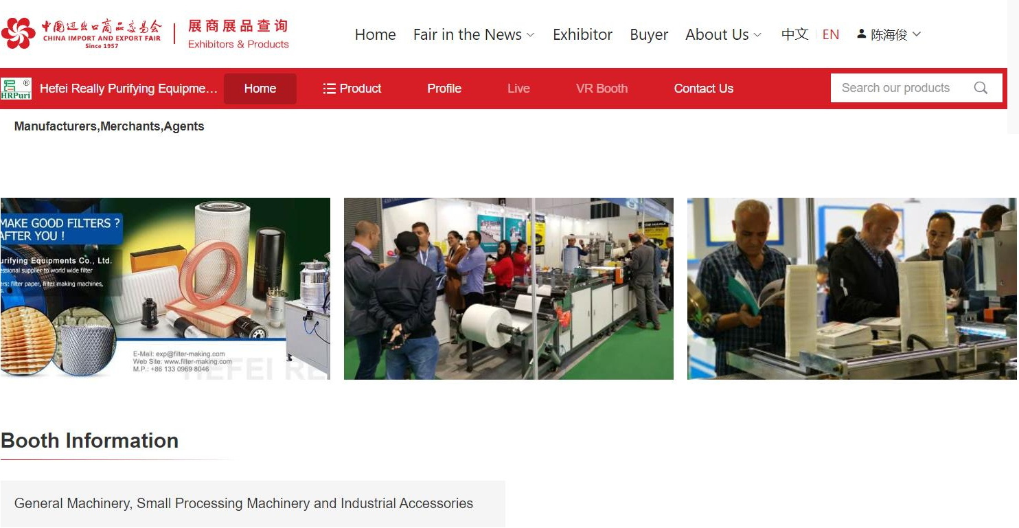 Asistimos a la 132ª Feria de Cantón como expositores, presentamos nuestras máquinas a los fabricantes de filtros de todo el mundo.